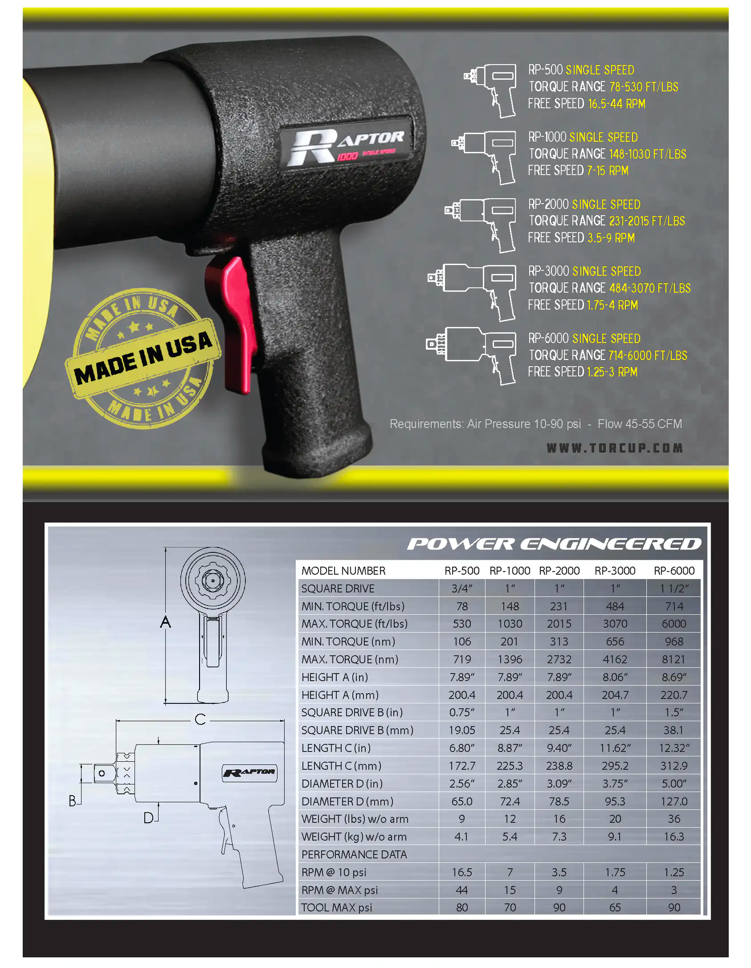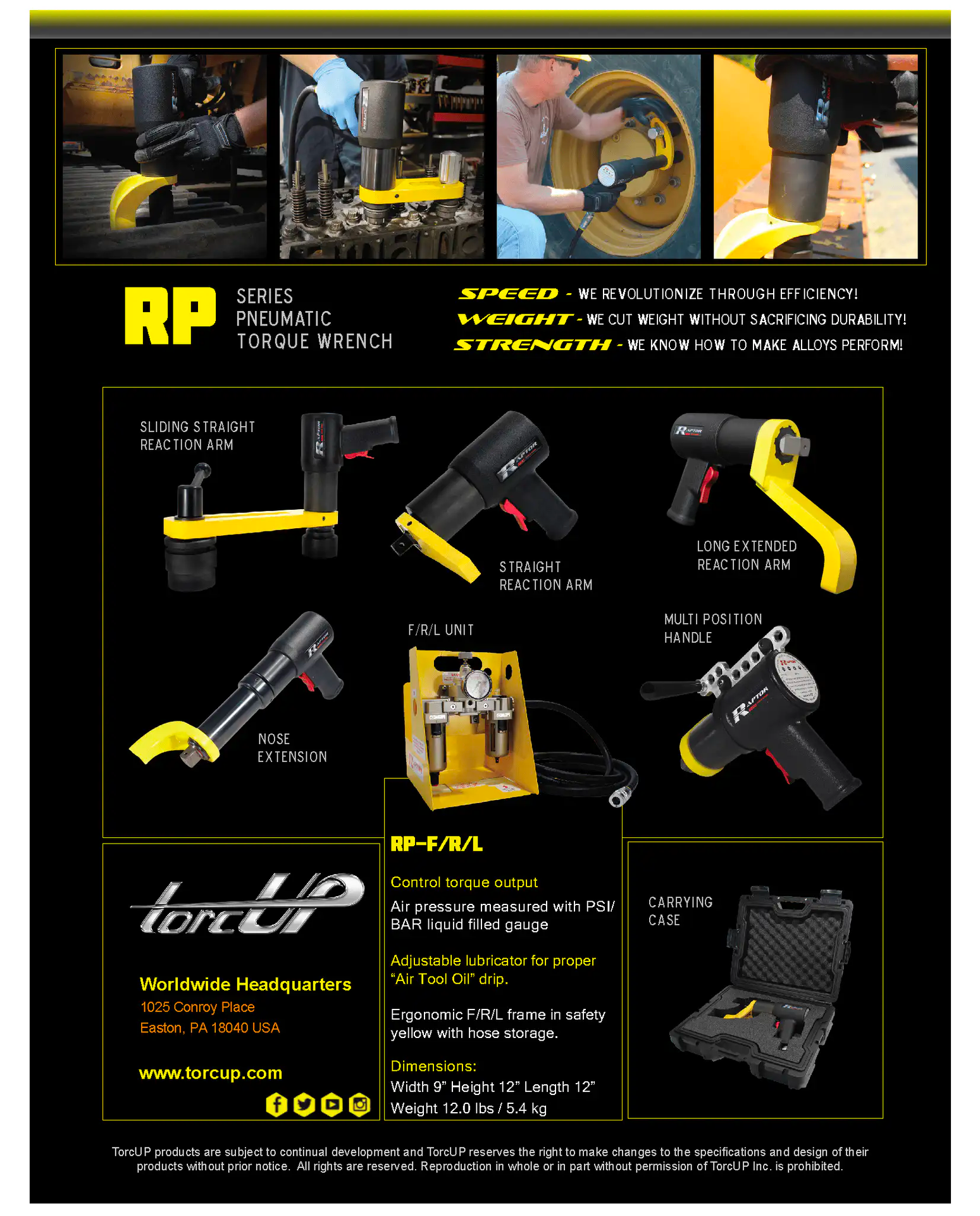| Wrench Model | RP-500 (106 - 719 N.m), RP-1000 (201 - 1396 N.m), RP-2000 (313 - 2732 N.m), RP-3000 (656 - 4162 M.M), RP-6000 (969 - 8121 N.m) |